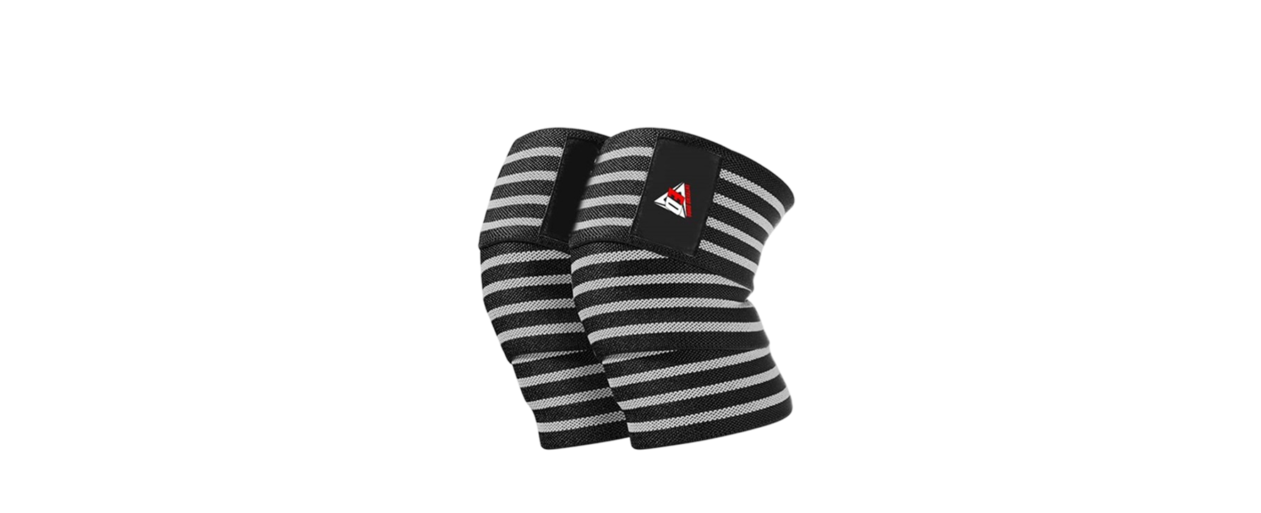 • Vendas de rodilla para levantamiento de pesas que mejoran la estabilidad y reducen el riesgo de lesiones.